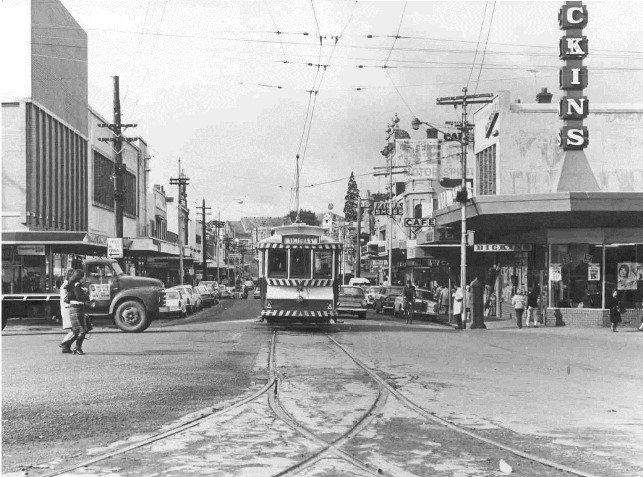 At the corner of Sturt and Grenville Streets the double track narrowed to the Bridge Street single track. At the other end of Bridge Street, at Main Road, was a junction for the Victoria Street and Mt Pleasant lines. At Grenville Street was a small pole on which was placed a selector switch, which the motorman could operate without leaving the tram. There were three positions: Victoria Street; Off; Mt Pleasant. Trams shunting at Grenville Street set the switch to the “off” position so that no signal was operated. On the north side of Bridge Street were two signals, one for Victoria Street, the other for Bridge Street only. On the south side were the Mt Pleasant and Bridge Street only box. No tram could proceed if there was a RED signal in the Bridge Street box. The Bridge Street signals were cleared at the Main Road junction. 9