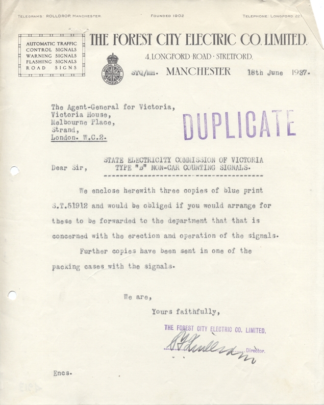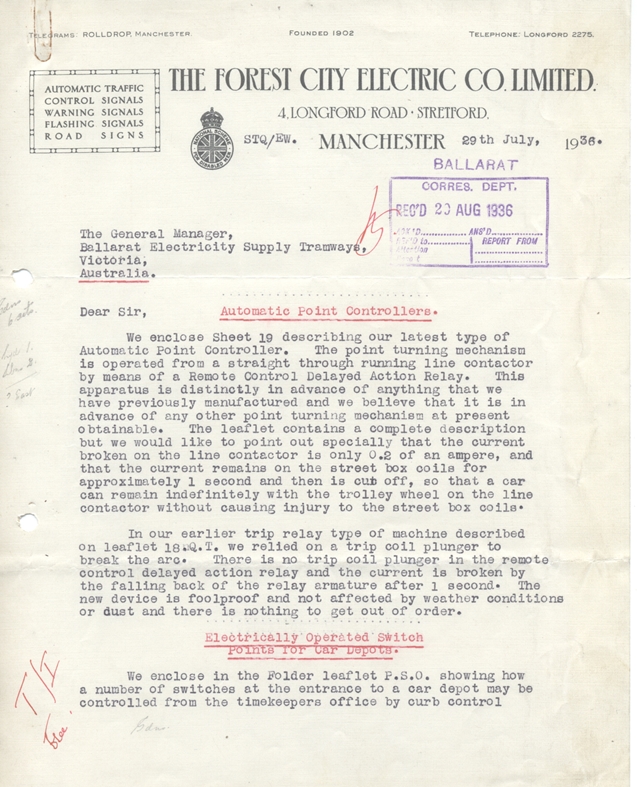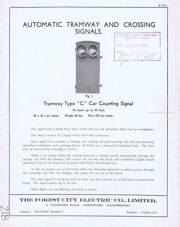 Correspondence from the Forest City company quoted its official name: “The Forest City Electric Co. Limited, 4 Longford Court, Stretford, Manchester”. The SEC received catalogues from the Company listing various products for use on trams, trolleybuses and motor buses, such as stop signs, automatic point controllers and traffic control signals.