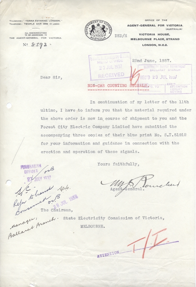 In August 1937 the “Ballarat Courier” reported that the “Forest City” system had operated in Geelong for the past 6 or 7 years. The system was now operating on several sections of Wendouree Parade, and inspection revealed a marked improvement compared to the old staff system. “It will be some time before all lines are completed, but when completed the efficiency of through services will be assured”. [6]