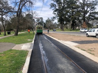 Testing and Commissioning took place on Monday 30 September, with Scrubber tram No. 8 the first tram followed by a number of the Museum's other trams. The ride is very smooth with almost no noise or click clacks at the joints, a direct contrast to the previous noise when trams crunched their way along the track.
