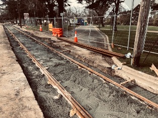 The section of the Museum's track between Depot Junction and Carlton St, just under 300m in length, has long been identified as the section of Museum's Wendouree Parade track that needed to be replaced first. Originally laid in 1905 when the tramway was converted from horse to electric. In 1936 it was relaid again when the State Electricity Commission of Victoria refurbished the Ballarat tram system. By 2019, both the sleepers and rail were life expired, the rail suffering from brittle fractures. This section of track was the most worn with some trams running on their flanges in parts of the track.1