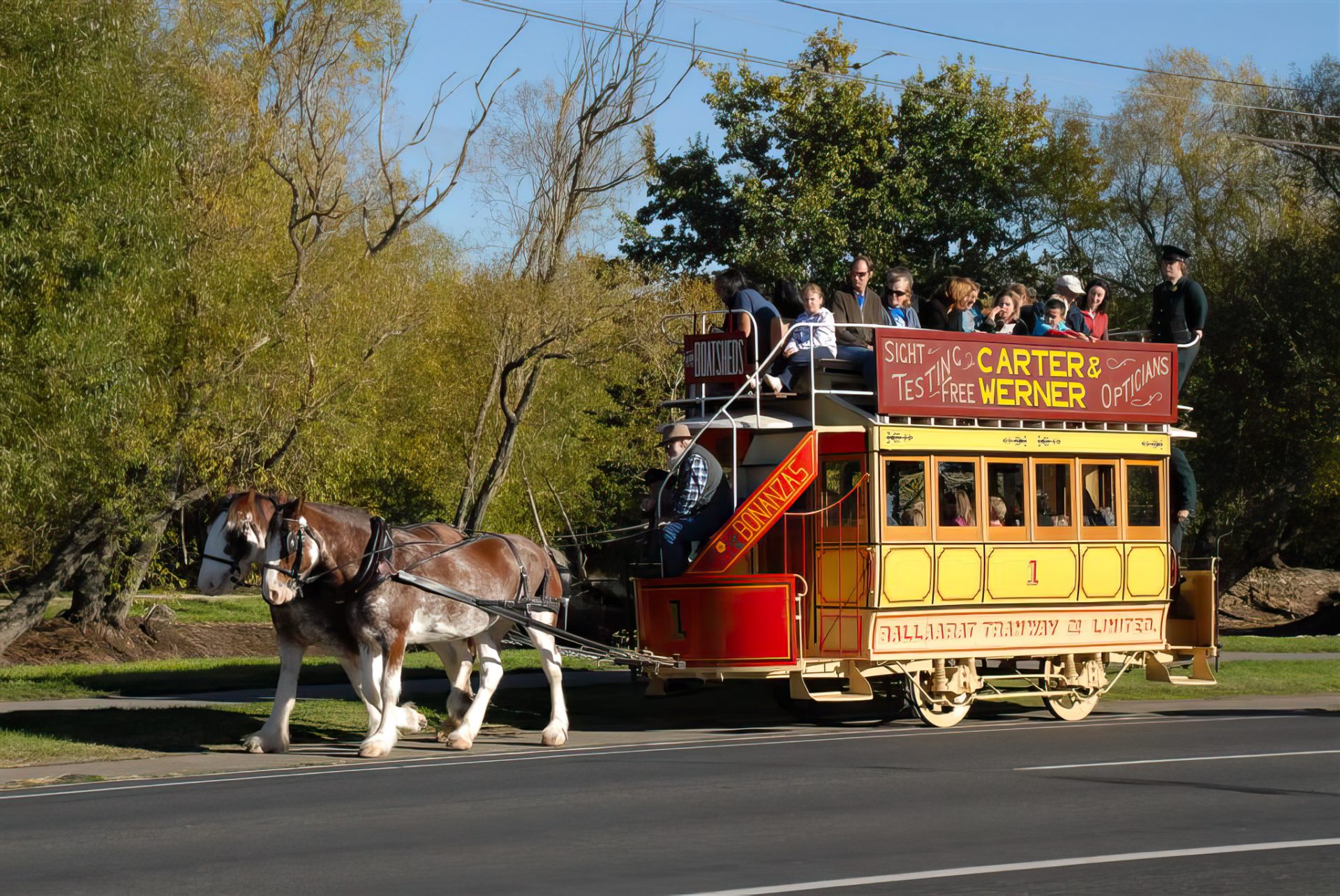 The No. 1 Horse Tram was built in 1887 by Duncan and Fraser for the Ballaarat Tramway Company Ltd. as a double-decked horse tramcar. The tram was displayed at the Adelaide Exhibition, and then reassembled at the Ballarat tram depot.