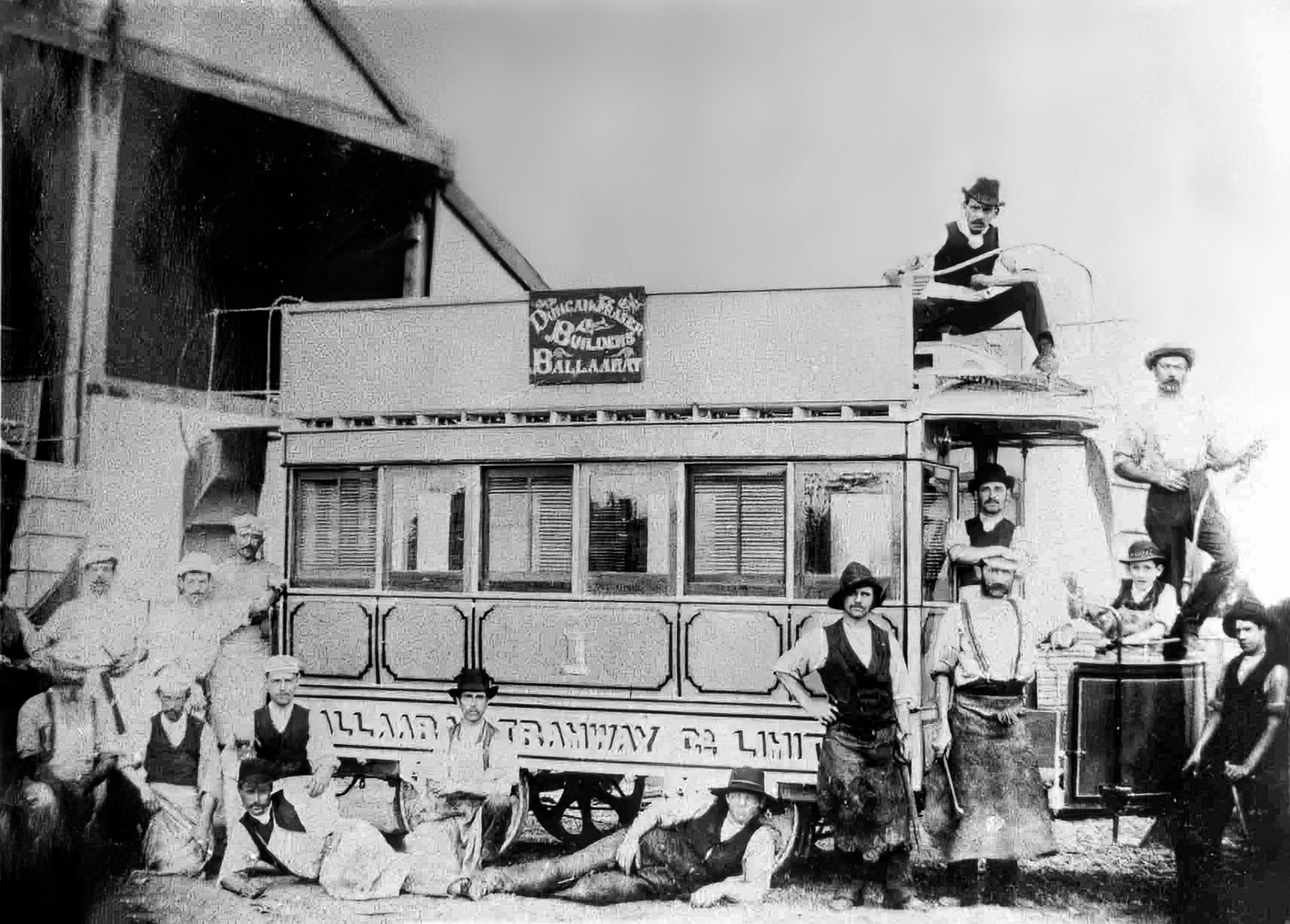 1887 – Body built by Duncan and Fraser of Adelaide, assembled in Ballarat and delivered to Ballaarat Tramway Co. as tram No. 1.
